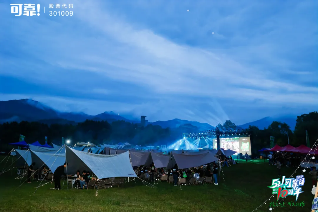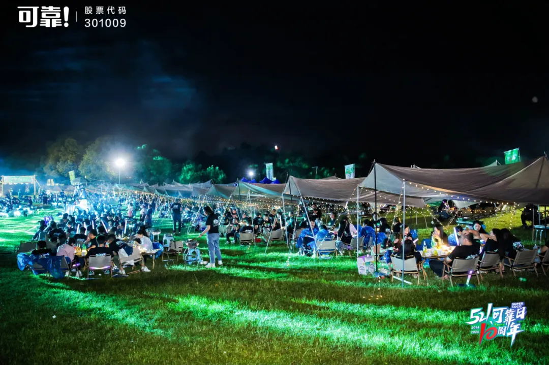 夜幕四合,繁星初上,可靠全体600余人心连心聚在一起,围坐在千岛湖温馨静谧的露营草地上倾听、分享,温暖的灯光映照着每一张兴奋的脸庞,将整个营地渲染地暖心又热烈。四周的帐篷点缀着五彩斑斓的灯光,像是星星点点的梦境,为晚会增添了几分神秘和浪漫。