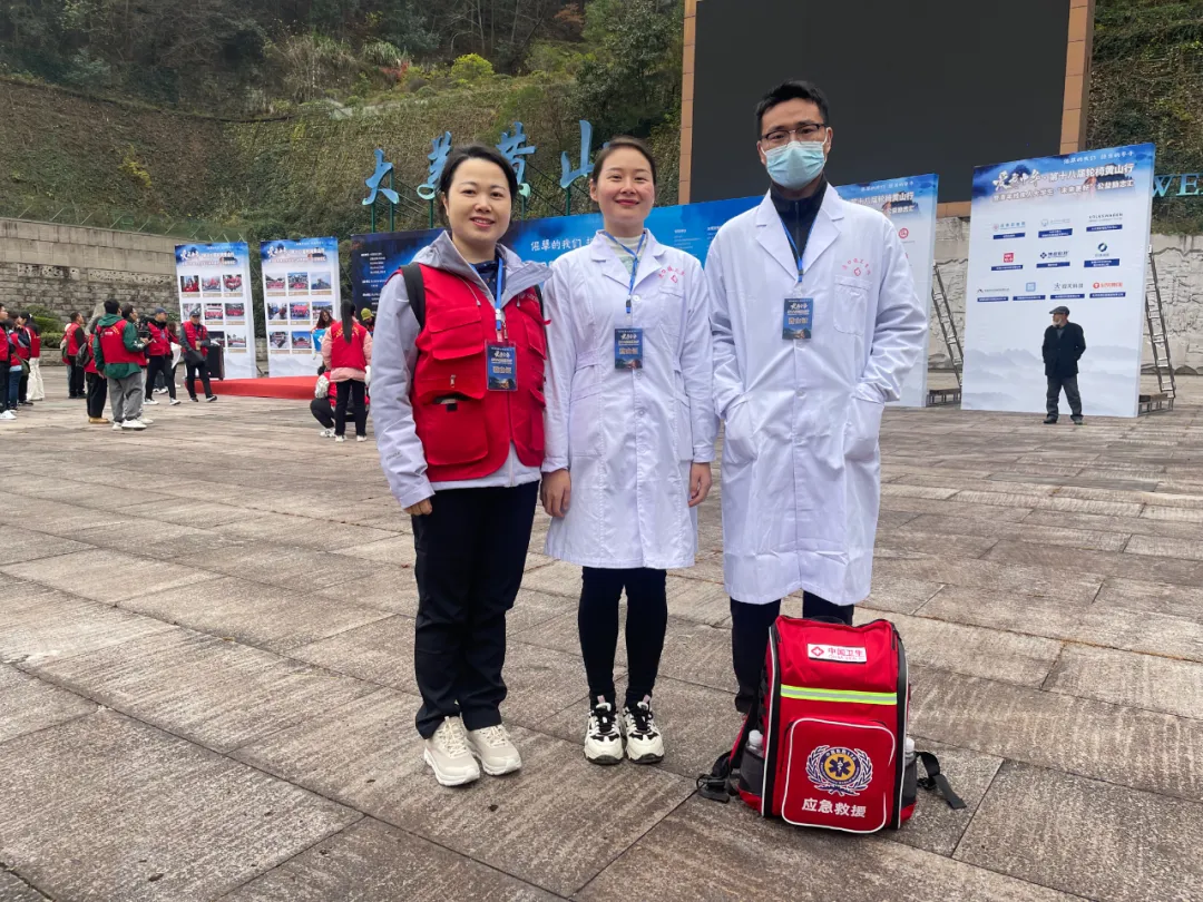 可靠股份首席养老专家鞠丽萍(最左)与救援团队合照为确保活动的安全顺利进行,现场配备了专业的医疗团队和救援人员。可靠股份首席养老专家鞠丽萍作为美国心脏协会(AHA)的急救导师,受邀加入紧急救援团队,为轮椅黄山行的安全提供坚实保障。