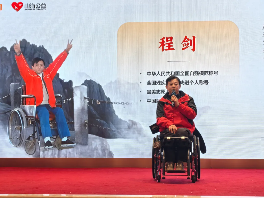 “全国最美志愿者”程剑现场分享安徽省残疾人协会名誉主席、中国旗袍先生崔万志先生也来到了现场。他用自己的实际行动诠释了即使面临身体上的限制和外界的偏见,也能通过不懈的努力和坚持实现自己的梦想和目标,他的乐观态度和积极精神如同一束光,照亮了周围人的心灵。他面对挫折从不气馁,总是以微笑和坚韧去面对生活的挑战,成为了现场所有人学习的榜样。