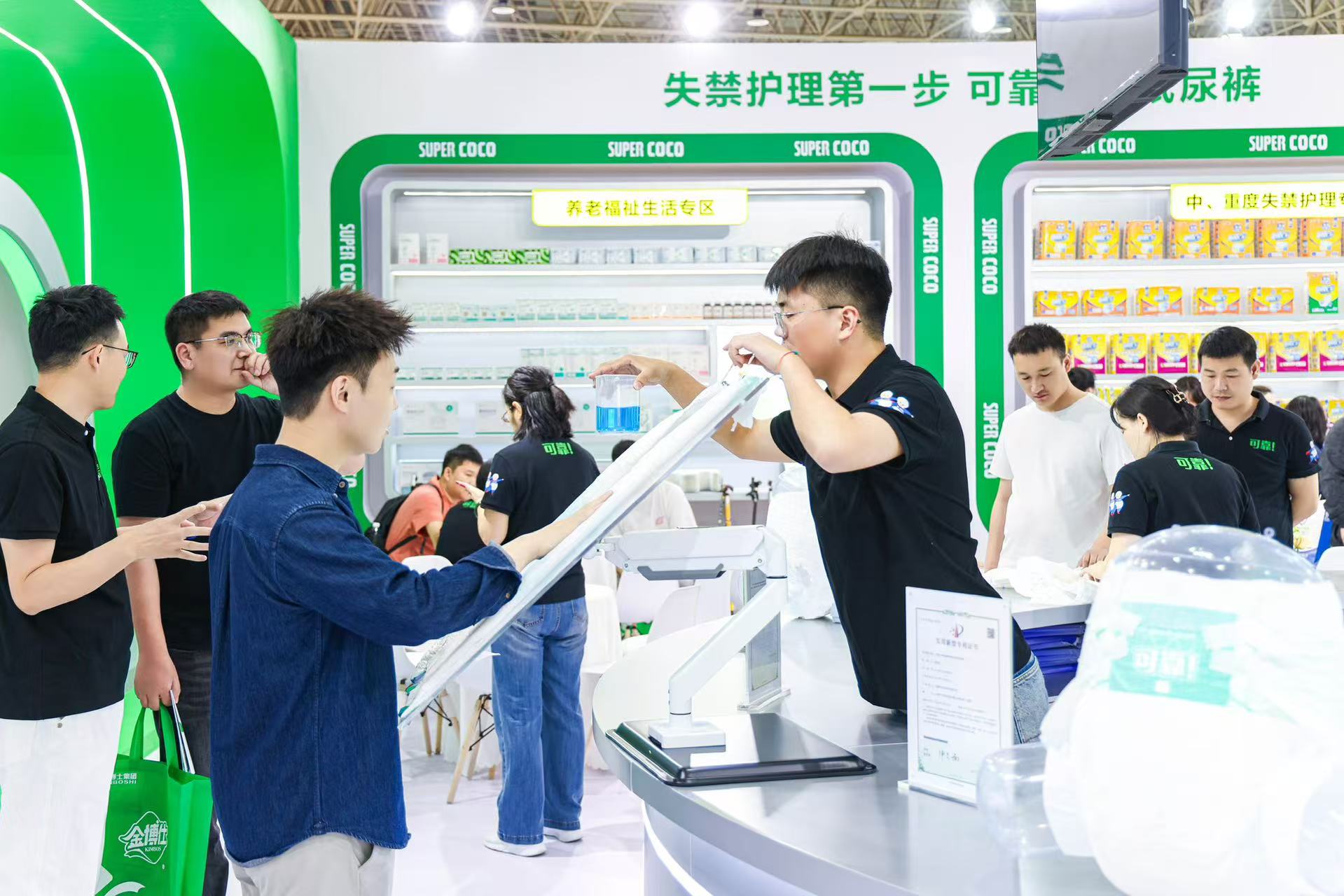 本次展品端核心分为四大专区:1. 中、重度失禁护理专区;2、轻失禁护理专区;3.养老福祉专区;4. 母婴专区,其中: