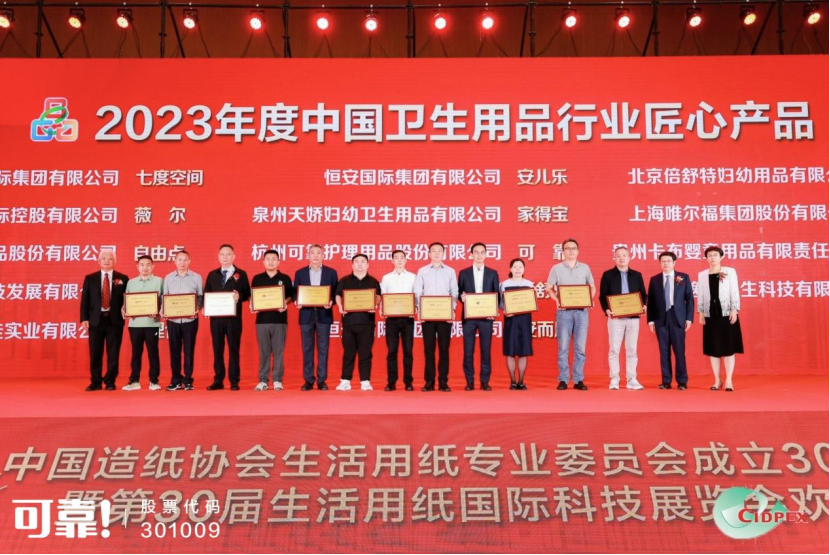 在开幕仪式上,中国造纸协会生活用纸专业委员会正式发布“生活用纸行业30年脊梁人物”,可靠股份董事长金利伟凭借多年来为中国成人失禁护理行业做出的突出贡献成功入选。同时,可靠股份也顺利入选“三品”全国行——2023年中国生活用纸和卫生用品行业“匠心产品”榜单。